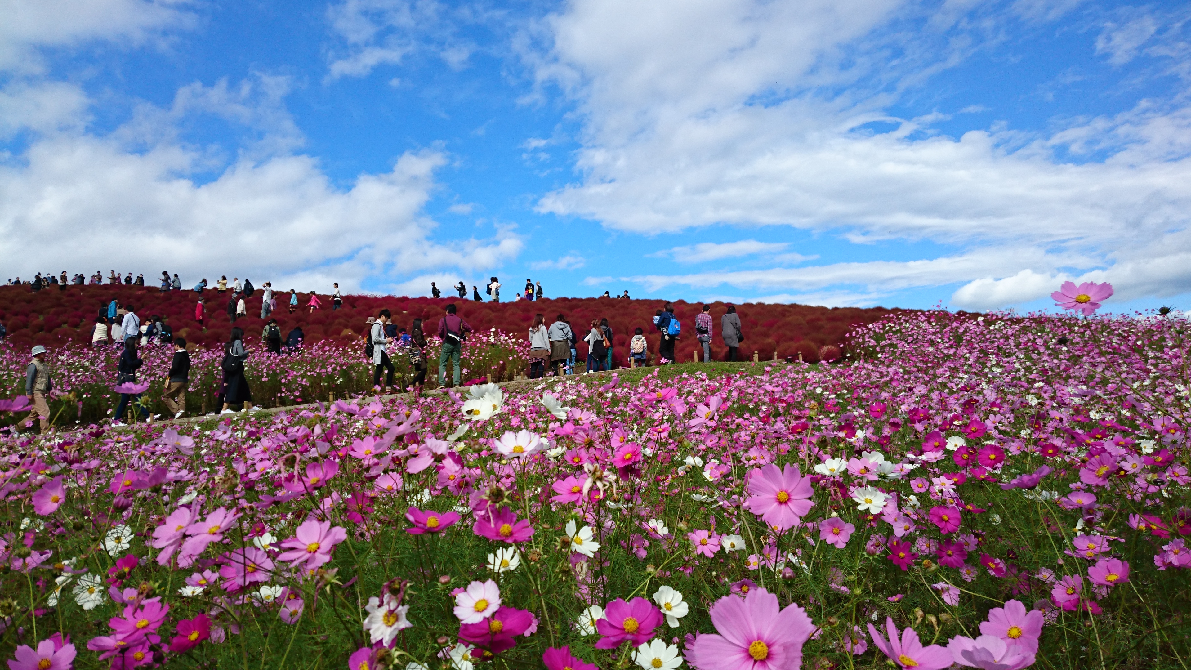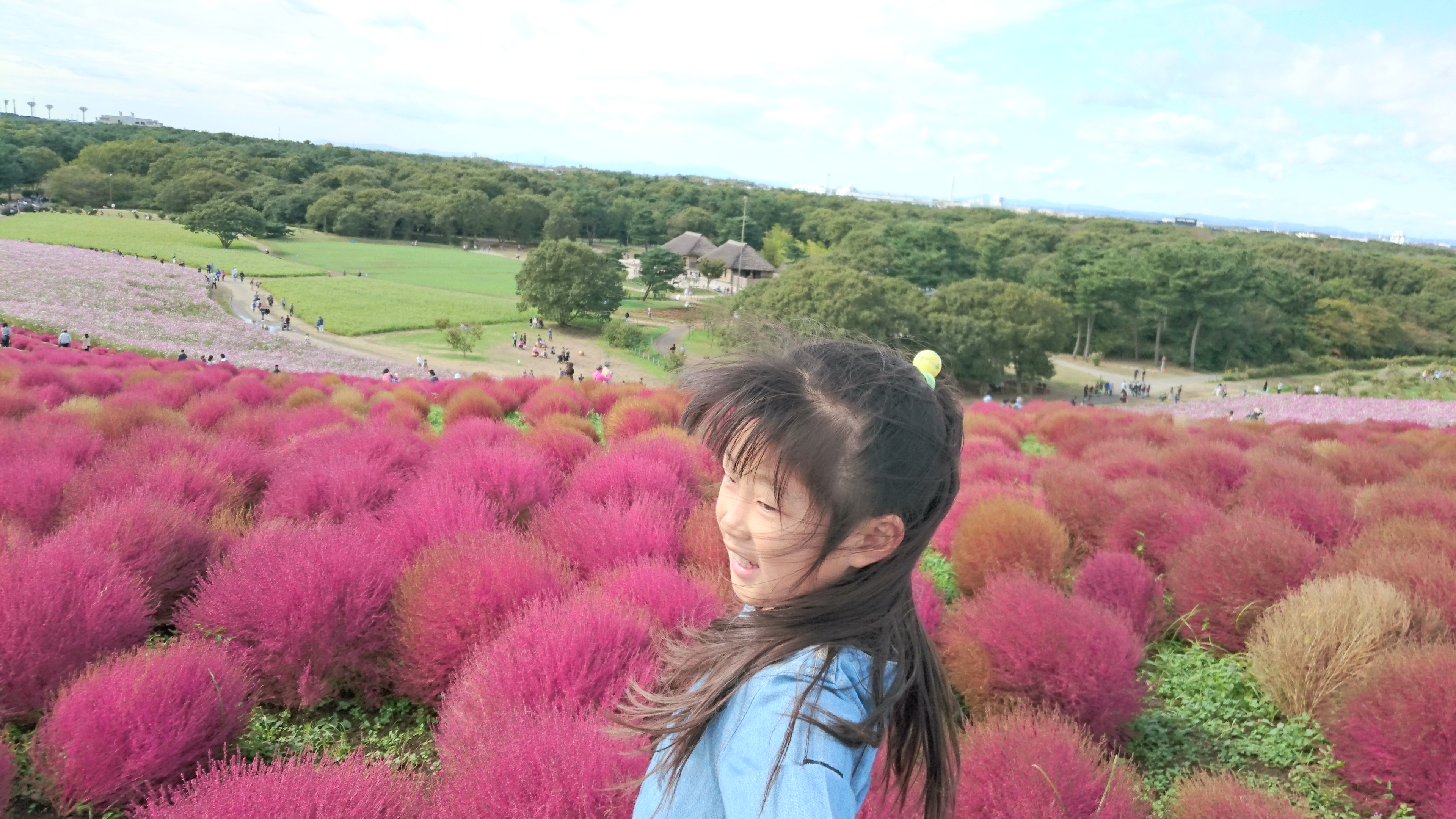 まずは加藤家いつもの3人でひたち海浜公園へ。HPで調べると今はコキアとコスモスが見頃となっているとのことで楽しみに向かいました。