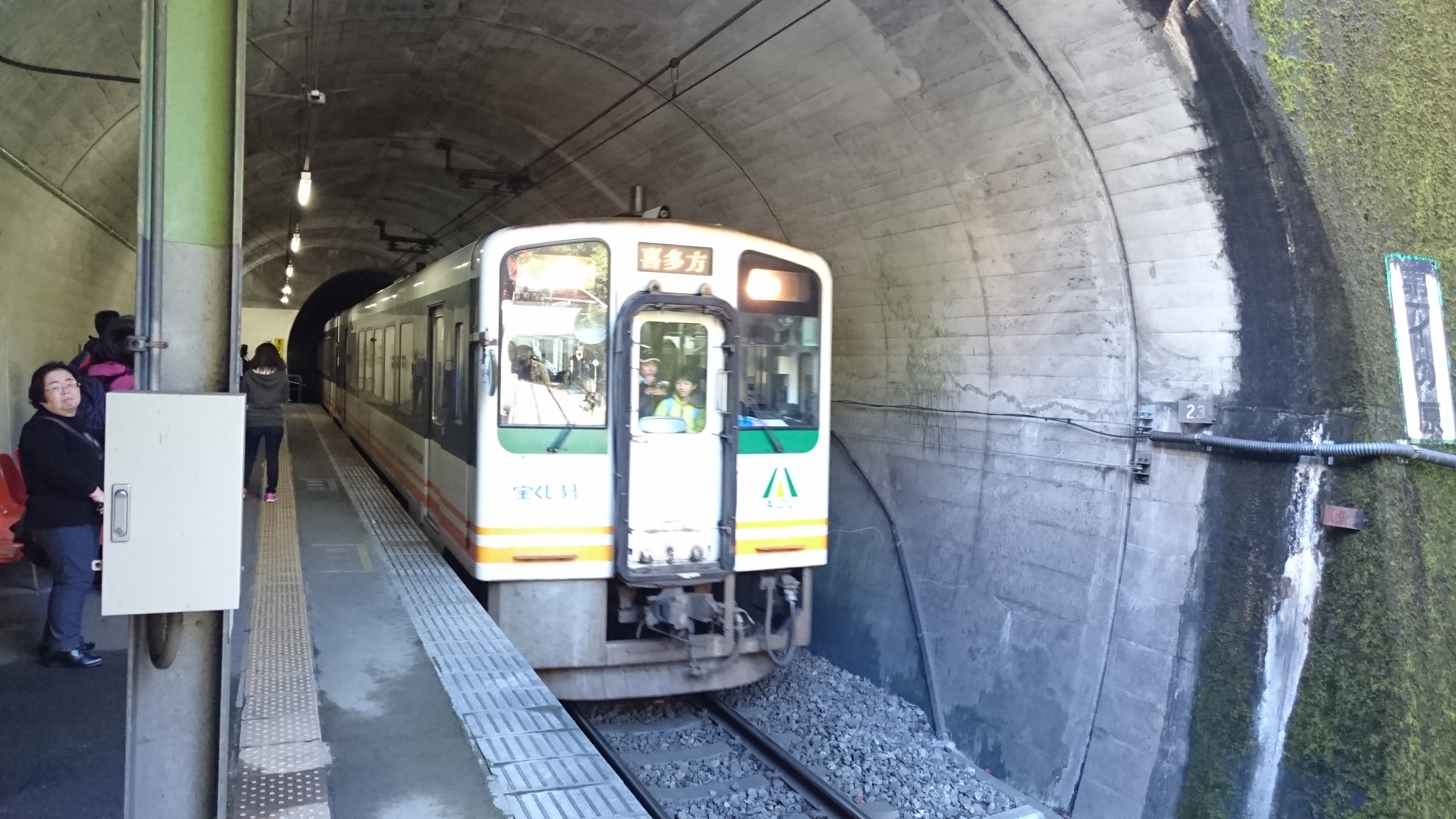 龍王峡駅前の駐車場に車を止めて駅から電車で川治温泉駅まで行き、そこから龍王峡駅まで戻ってくる予定でしたが、「この前の豪雨の影響で一部通行止めになっている」と川治温泉駅の駅員さんに聞いてびっくり!急きょルートを川治湯元までに変更しました。駅を出て小網ダムを横切り鬼怒川を横目に川治の温泉街まで歩きました。